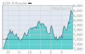 Dow 30 is up 3 points after 30 minutes of trade- up over 50 poinsts from day's low.